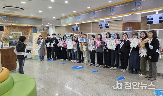 이번 캠페인은 행복민원실 직원 20여 명의 참여로 실시됐으며, 민원실을 찾는 시민들이 보다 친절한 응대를 통해 만족스러운 민원서비스를 받을 수 있도록 공무원의 서비스 마인드를 제고하기 위한 취지로 마련됐다.