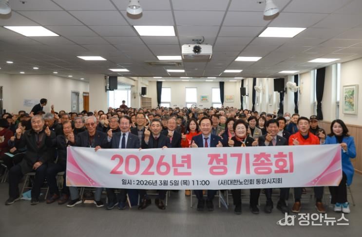 정안뉴스 김재홍 기자 | 대한노인회 통영시지회는 지난 5일 노인복지회관 4층 강당에서 관내 분회장 및 경로당 회장, 지회 임원진 등 260여 명이 참석한 가운데 노인복지 향상을 위한 2026년 정기총회를 개최했다.