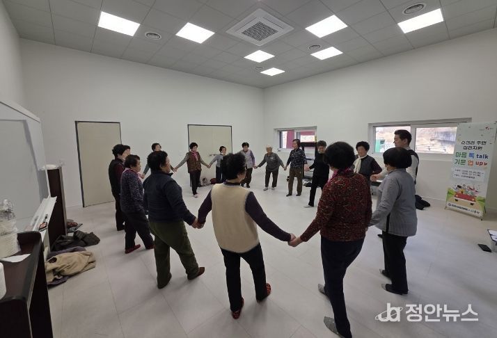 정안뉴스 안정주 기자 | 성주군보건소는 초전면 소성리 지역주민의 정신건강 증진을 위해 '마음 '톡(Talk)' 기운 '업(Up)'' 프로그램을 오는 3월 5일부터 12월 17일까지 운영한다고 밝혔다.