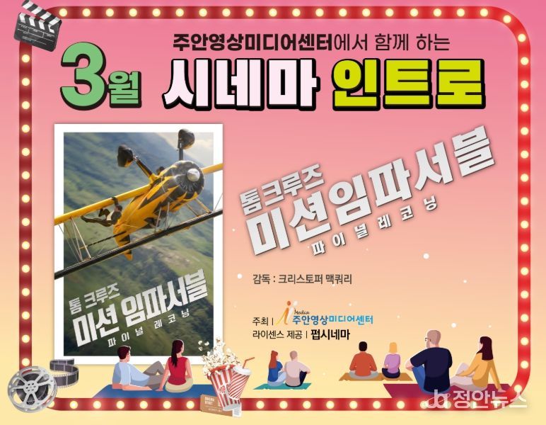 정안뉴스 안정주 기자 | 인천 미추홀구 주안영상미디어센터(센터장 장구보, 이하 센터)가 주민들을 위한 정기 영화 상영 프로그램 ‘시네마 인트로(Cinema Intro)’를 운영한다.