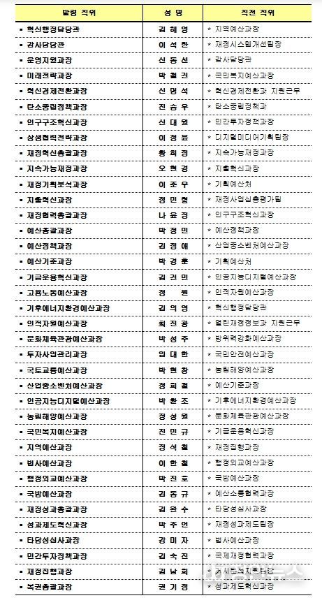 정안뉴스 안정주 기자 | 기획예산처는 대내외 정책환경 변화에 능동적으로 대응하고, 조직의 혁신과 활력을 제고하기 위해 2026년 과장급 정기인사를 단행했다.