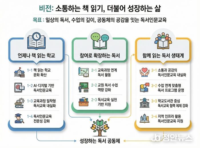 이번 계획은 독서를 일회성 행사에 그치지 않고, 학생의 사고력과 학습 역량을 지탱하는 핵심 기반으로 확장하는 데 중점을 두었다. 이를 통해 독서교육을 학교 교육과정과 학생들의 일상 속에 체계적으로 정착시킬 구상이다.