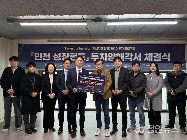 이번 투자계약은 지난해 신규로 추진된 인천의 유망 기업 의무투자 프로그램인 ‘Synergia Incheon(시너지아 인천) 연구개발(R·D) 투자 프로젝트’를 통해 진행됐다. 이 사업은‘인천성장펀드 4호’의 전략적 투자 지원 프로그램으로, 최종 선정 기업에 10억 원의 직접 투자와 함께 중소벤처기업부 ‘스케일업 팁스(Scale-up TIPS) 연구개발(R·D) 프로그램’ 추천을 연계해 지원한다.