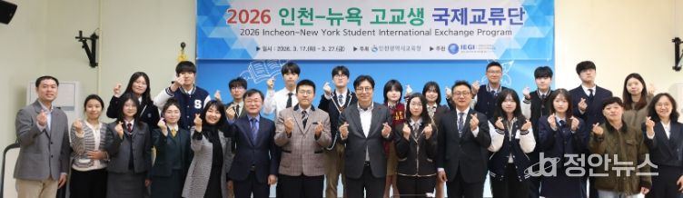 정안뉴스 안정주 기자 | 인천광역시교육청동아시아국제교육원은 지난 13일 시교육청 영상회의실에서 ‘2026 인천-뉴욕 고교생 국제교류단 발대식’을 개최했다.