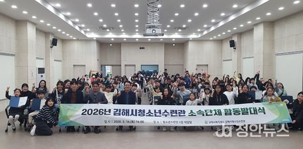 정안뉴스 김재홍 기자 | (재)김해시복지재단 김해시청소년수련관은 지난 14일 오후 2시, 청소년수련관 내 대강당에서 소속 청소년 자치기구 및 동아리 등 소속단체가 모두 참여하는 ‘2026년 청소년수련관 소속단체 합동발대식’을 성황리에 개최했다고 밝혔다.
