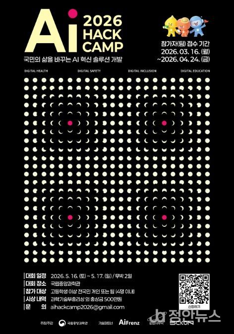 정안뉴스 안정주 기자 | 과학기술정보통신부 국립중앙과학관은 ‘국민의 삶을 바꾸는 인공지능 혁신 해결책(솔루션) 개발’을 주제로 5월 16일부터 17일(까지 무박 2일간 국립중앙과학관 미래 기술관에서'AI Hack Camp 2026'을 개최한다고 밝혔다.