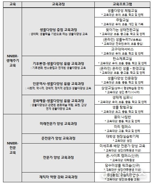 생애주기별 교육은 ‘생물다양성 체험교실’, ‘탄소제로교실’ 등 연령대 특성을 반영한 체험형 프로그램을 중심으로 유아부터 성인까지 연령별 맞춤 교육 서비스를 제공하는 데 중점을 뒀다.