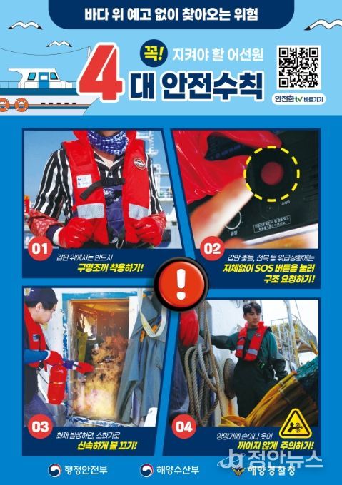 황순조 사회재난대응국장은 “봄철 바다는 잦은 안개로 인해 어선 충돌 위험이 높으므로 조업 시 각별한 주의가 필요하다”라며, “어업인 여러분께서는 안전한 조업을 위해 구명조끼 착용, 위치발신장치 상시 작동 등 안전수칙을 꼭 지켜주시길 바란다”라고 당부했다.