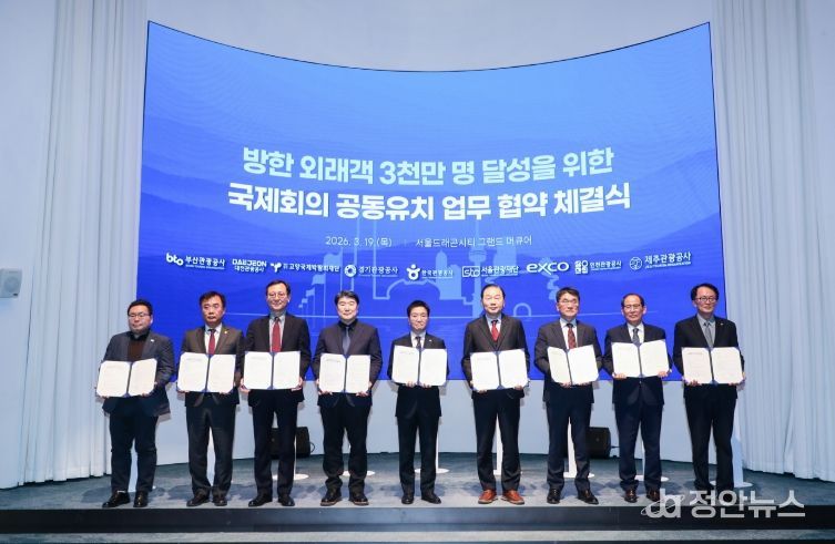 정안뉴스 안정주 기자 | 인천관광공사(사장 유지상)는 한국관광공사(사장 박성혁, 이하 KTO)와 ‘방한 외래객 3천만 명 달성을 위한 국제회의 공동 유치 업무협약’을 체결하고 중대형 국제회의 공동 유치 확대를 위한 협력체계를 강화한다고 밝혔다.