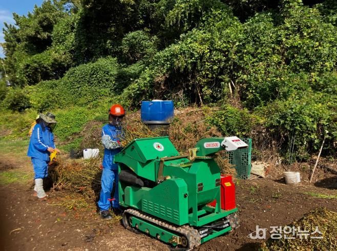 ‘영농부산물 안전처리 지원사업’을 통해 과수 잔가지, 고춧대, 깻대 등 영농부산물을 무료로 파쇄 처리해 농가의 처리 부담을 줄이고, 불법소각으로 인한 산불 위험 방지 및 미세먼지 발생 저감을 위해 노력하고 있다.