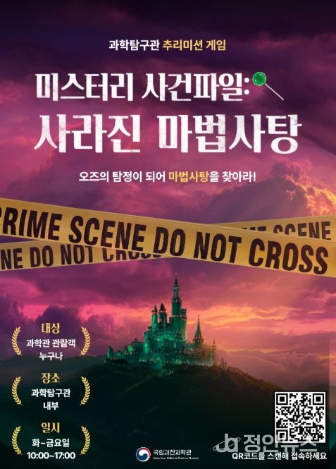 정안뉴스 안정주 기자 | 과학기술정보통신부 국립과천과학관은 관람객이 즐길 수 있는 디지털 추리 임무(미션) 프로그램 『수수께끼(미스터리) 사건 파일: 사라진 마법 사탕』을 3월 31일부터 과학탐구관에서 선보인다고 밝혔다.