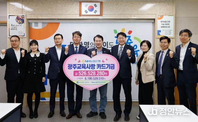 정안뉴스 안정주 기자 | 광주시교육청은 지난 20일 본청 상황실에서 NH농협은행으로부터 지난해 광주교육사랑카드 적립금 5억2천652만원을 전달받았다.