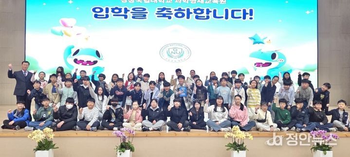 정안뉴스 김재홍 기자 | 경상국립대학교 과학영재교육원은 3월 21일 GNU컨벤션센터 대강당에서 ‘2026학년도 입학식’을 개최하고 신입생 143명의 새로운 출발을 공식적으로 알렸다. 이날 행사에는 학부모와 교직원 등 300여 명이 참석해 미래 과학인재로 성장할 학생들의 첫걸음을 함께 축하했다.