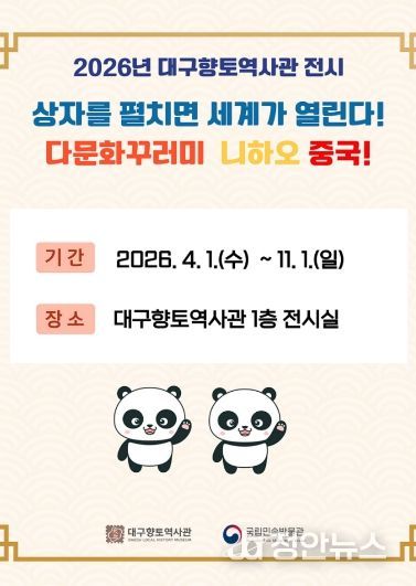 정안뉴스 안정주 기자 | 대구문화예술진흥원 박물관운영본부 소속 대구향토역사관은 국립민속박물관이 주관하는 ‘2026 다문화꾸러미 대여 운영’ 공모사업에 선정되어, 올해 중국 다문화꾸러미를 활용한 다양한 사업을 운영한다.