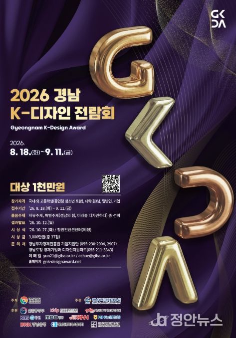 정안뉴스 김재홍 기자 | 경남도는 디자인 혁신으로 도내 기업의 경쟁력을 강화하고 지역 경제에 활력을 불어넣기 위해 '2026 경남 K-디자인 전람회'를 개최한다고 밝혔다.