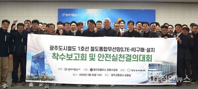 공사는 26일 본사 4층 상황실에서 '광주도시철도 1호선 철도통합무선망(LTE-R) 구매설치' 사업의 착수보고회 및 안전실천 결의대회를 개최했다고 밝혔다.