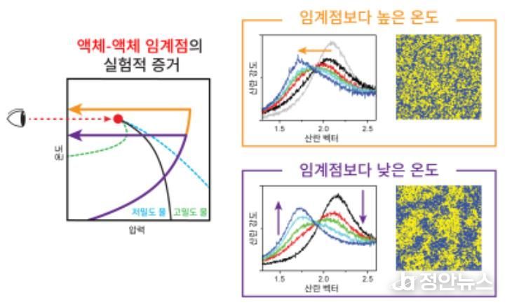 과학기술정보통신부는 포항공과대학교(POSTECH) 김경환 교수 연구팀이 스웨덴 스톡홀름대학교 물리학과 앤더스 닐슨 교수팀과 공동으로 물의 ‘액체-액체 임계점’을 세계 최초로 관측했다고 밝혔다.
