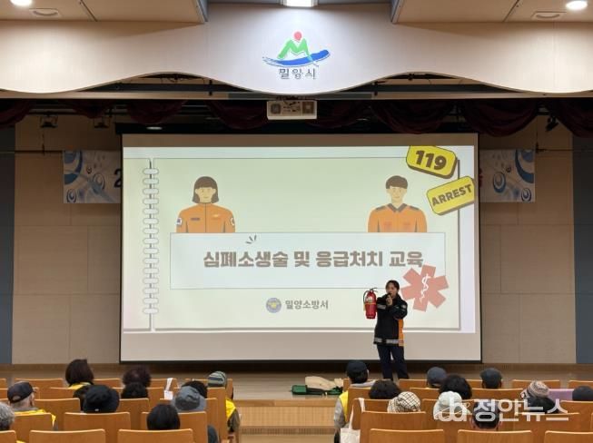 정안뉴스 김재홍 기자 | 경남 밀양시는 지난 24일과 26일, 27일 3일간 시청 대강당에서 대한노인회 밀양시지회 소속 노인일자리 사업 참여자 1,000여 명을 대상으로 안전교육을 실시했다.