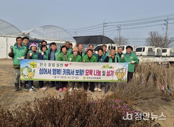 정안뉴스 안정주 기자 | 성주군새마을회는 3월 27일 성주군산림조합 나무전시판매장에서 탄소중립을 실천하고 나무 심기의 중요성을 알리기 위한 ‘환경살리기운동’을 실시했다.