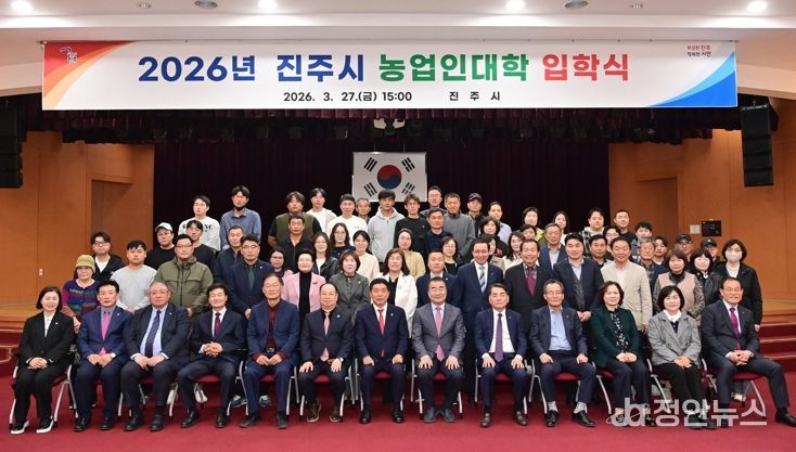 정안뉴스 김재홍 기자 | 진주시는 지난 27일 시청 시민홀에서 입학생 131명과 내빈이 참석한 가운데 전문 농업경영인 양성을 위한 ‘농업인대학 입학식’을 개최했다.