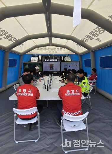 정안뉴스 김재홍 기자 | 통영시는 봄철 대형산불 특별대책 기간을 맞아 대형산불 발생에 대비하고 신속한 대응체계 구축을 위해 유관기관 합동 산불진화훈련을 실시했다고 밝혔다.