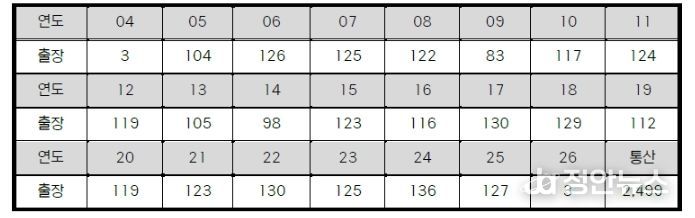 정안뉴스 안정주 기자 | 삼성 강민호가 KBO 리그 최초 2,500경기 출장까지 단 한 경기만 남겨두고 있다.