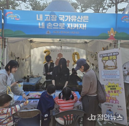 정안뉴스 안정주 기자 | 고령군 국가유산 지킴이회(회장 김민규)가 지난 3월 27일부터 29일까지 3일간 열린 ‘2026 대가야 축제’에서 자원봉사 부스를 운영하며 일제강점기 국외로 반출된 ‘대가야금관’ 환수를 위한 범국민 서명운동을 펼쳐 큰 호응을 얻었다.