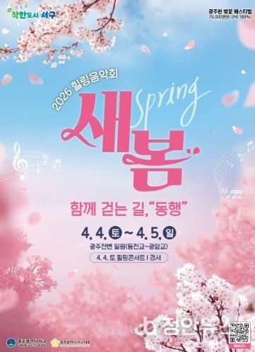 정안뉴스 안정주 기자 | 광주광역시 서구가 완연한 봄을 맞아 오는 4일과 5일 광주천변 (광천동~유덕동 광암교) 일원에서 ‘제4회 힐링음악회 새봄’을 개최한다.