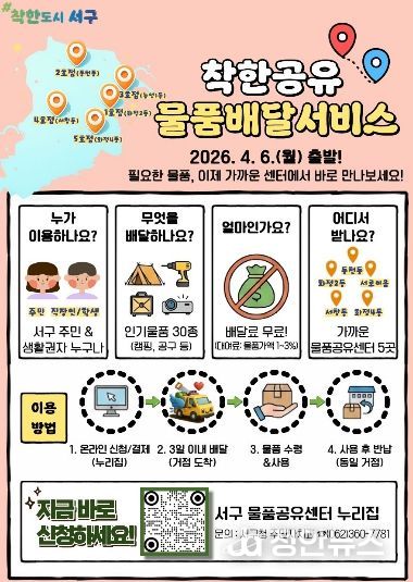 서구는 현재 화정2동, 화정4동, 동천동, 농성1동, 서창동 등 관내 5개소에 물품공유센터를 구축‧운영 중이며 주민 누구나 생활용품을 보다 쉽고 편리하게 이용할 수 있는 기반을 마련했다. 이번 퀵 쉐어 서비스는 주민이 물품공유센터 누리집을 통해 원하는 물품을 신청하면 3일 이내에 이용자가 지정한 가장 가까운 공유센터로 물품을 이동·배달해주는 방식으로 운영된다. 이에 따라 주민들은 여러 센터를 직접 찾아다닐 필요 없이 생활권 내 가까운 거점에서 편리하게 물품을 수령할 수 있다.