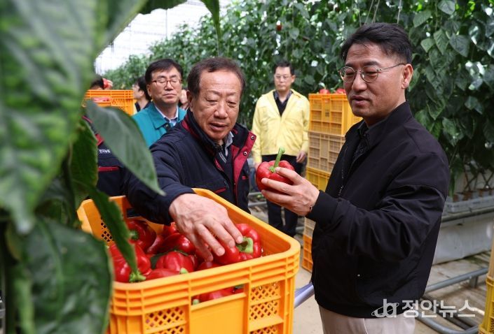 정안뉴스 안정주 기자 | 박정훈 농림축산식품부 식량정책실장은 4월 7일 최근 중동 상황에 따른 국제유가 상승과 농자재 가격 상승으로 어려움을 겪고 있는 경기도 고양시 소재 파프리카 시설원예 농가를 방문하여 생육상황과 영농 여건을 직접 점검하고 현장 애로사항을 청취했다.