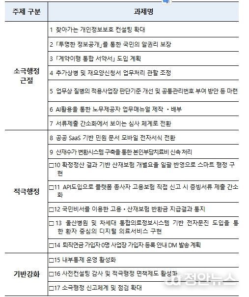 정안뉴스 안정주 기자 | 근로복지공단(이사장 박종길)은'2026년 적극행정 실천과제'17건을 선정하고, 국민 불편 해소를 위한 현장 중심의 업무처리 절차 개선을 본격 추진한다고 밝혔다.