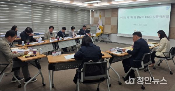 정안뉴스 김재홍 기자 | 경상남도는 8일 도청 중앙회의실에서 2026년 경상남도 지속가능경영 확산 사업계획 등과 관련해 전문가 자문을 위한 ‘경상남도 ESG 자문위원회’를 개최했다고 밝혔다.