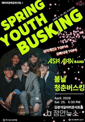 정안뉴스 안정주 기자 | 대구 중구는 오는 4월 25일부터 2026년 ‘문화가 있는 날, 매마토 문화공연’을 개최한다.