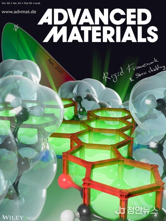 연구 성과는 ‘Rec. 2020 표준에 근접한 고휘도 초고효율·고안정성 순수 녹색 초형광 유기발광다이오드(Stable Pure-Green Hyperfluorescent Organic Light-Emitting Diodes with Ultimate Efficiency at High Brightness Toward Rec 2020 Standard)’라는 제목으로 재료과학 분야의 세계적 권위지 《어드밴스드 머티리얼스(Advanced Materials)》(IF:26.8)에 후표지 안쪽 지면(Inside Back Cover) 논문으로도 선정돼 5월 오프라인 호에 실릴 예정이다(논문링크: DOI: 10.1002/adma.202518330).