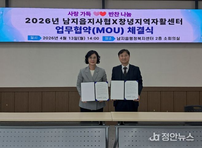 정안뉴스 김재홍 기자 | 창녕군 남지읍 지역사회보장협의체(공공위원장 김선경)는 지난 13일 창녕지역자활센터와 ‘사랑가득 반찬나눔’ 사업 추진을 위한 업무협약(MOU)을 체결했다.