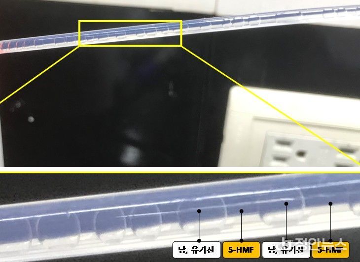 5-HMF는 PET 등 기존 플라스틱 소재에 사용되는 석유 유래 원료를 대체할 수 있는 친환경 물질로, 차세대 바이오 연료와 접착제 원료로 활용할 수 있다.