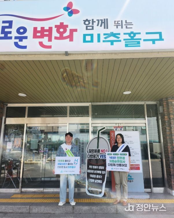 정안뉴스 안정주 기자 | 인천 미추홀구는 최근 국제 정세 불안과 자원·에너지 수급 불확실성이 확대됨에 따라, 공공기관이 선도적으로 자원 절약과 환경보호에 나서기 위해 ‘청사 내 일회용 컵 반입금지 캠페인’을 실시했다고 16일 밝혔다.