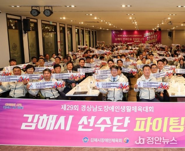 정안뉴스 김재홍 기자 | 김해시장애인체육회는 16일 김해 라페스타뷔페에서 제29회 경상남도장애인생활체육대회에 참가하는 김해시 선수단 결단식을 개최했다.