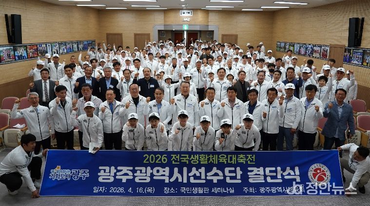 정안뉴스 안정주 기자 | 광주광역시체육회(회장 전갑수)가 16일 오후 국민생활관 세미나실에서 ‘전국생활체육대축전’에 참가하는 선수단의 선전을 기원하는 결단식을 개최했다.