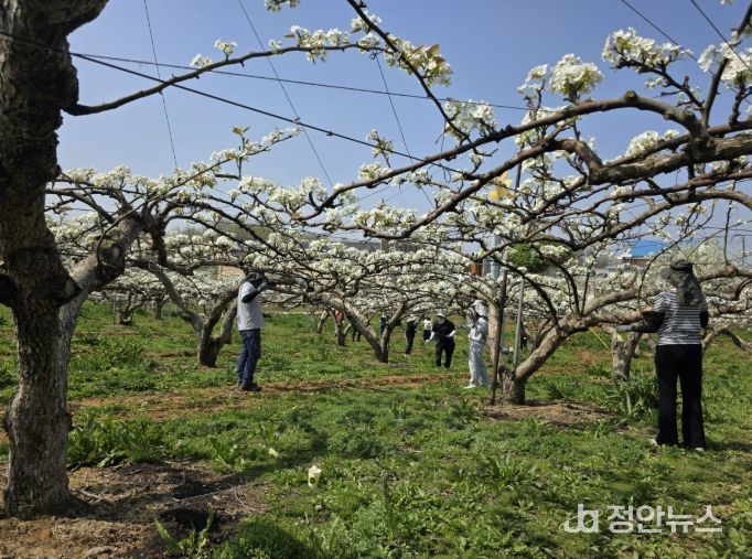 정안뉴스 안정주 기자 | 아산시가 본격적인 영농철을 맞아 농촌 인구 감소와 고령화로 어려움을 겪고 있는 과수 농가를 위해 지난 4월 12일부터 16일까지 ‘아산맑은배 인공수분(화접) 지원 일손돕기’를 대대적으로 추진했다.