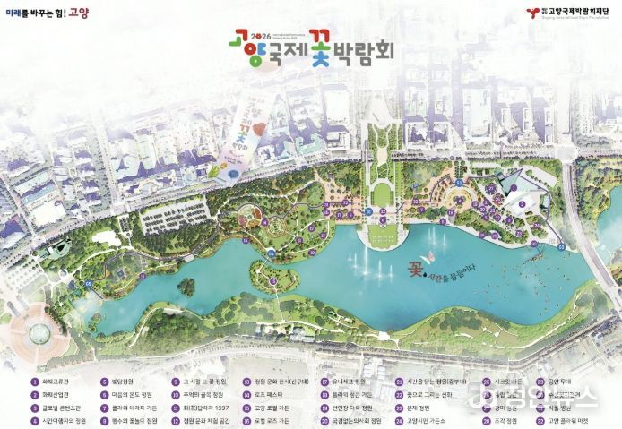 정안뉴스 안정주 기자 | 제18회 고양국제꽃박람회가 오는 24일부터 5월 10일까지 17일간 일산호수공원 일원에서 개최된다. 지난 1997년 처음으로 막을 올린 꽃박람회는 지난해까지 국내외 900여만 명 관광객이 방문한 명실상부 고양시 대표 축제다. 올해는 ‘꽃, 시간을 물들이다’를 주제로 화려한 야외전시, 실내 특별전시, 공연·이벤트, 플라워마켓 등으로 25만㎡ 규모를 가득 채운다.
