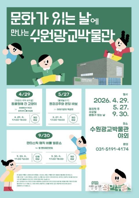 수원광교박물관 관계자는 “이번 공연은 어린이에게는 꿈과 즐거움을, 가족에게는 소중한 추억을 선사하기 위해 마련했다”며 “시민이 일상에서 문화를 누릴 수 있도록 다양한 프로그램을 지속해서 운영하겠다”고 말했다.