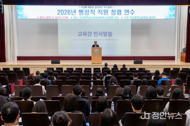 정안뉴스 안정주 기자 | 부산광역시교육청은 지난 16일 부산교육연구정보원 대강당에서 행정직 875명을 대상으로 ‘청렴 연수’를 개최했다고 17일 밝혔다.