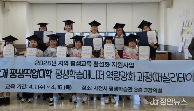 정안뉴스 김재홍 기자 | 사천시 평생학습관은 지역 평생교육 현장에서 활동할 전문 인력을 양성하기 위해 운영한 '평생학습매니저 역량강화 과정'을 성공적으로 마무리했다고 17일 밝혔다.