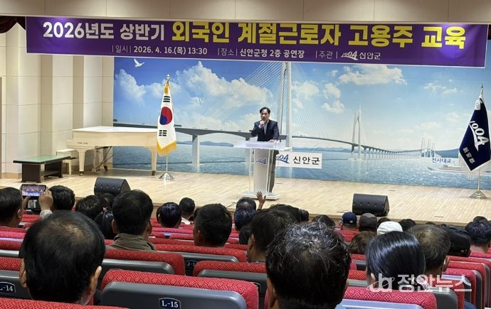 정안뉴스 안정주 기자 | 신안군은 외국인 계절근로자의 인권 보호와 안전한 고용 환경 조성을 위해 지난 16일, 관내 농·어업 고용주를 대상으로 ‘2026년 상반기 외국인 계절근로자 고용주 인권 및 3대 보험 의무가입 교육’을 실시했다고 밝혔다.
