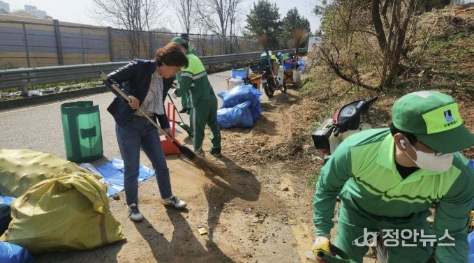 정안뉴스 안정주 기자 | 수원시 권선구 금곡동 행정복지센터는 지난 15일 금곡동 112-24 일원에서 권선구 환경위생과 공무원 및 환경관리원 12명과 함께 무단투기 폐기물을 정비했다.