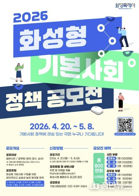정안뉴스 안정주 기자 | 화성특례시는 시민 참여 기반을 확대하고, 실효성 있는 기본사회 정책을 발굴하기 위해 '2026년 화성형 기본사회 정책 공모전'을 개최한다고 밝혔다.