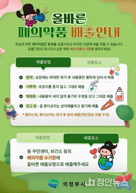 정안뉴스 안정주 기자 | 의정부시는 일상생활에서 발생하는 유해 폐기물인 폐의약품을 안전하게 수집‧처리하기 위해 관내 동 주민센터와 공동주택 등 총 31개소에 ‘폐의약품 수거함’을 설치했다.