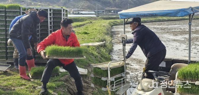 이번 모내기는 본격적인 영농철의 시작을 알리는 행사로, 정성껏 키운 모를 논에 옮겨 심으며 올 한 해 풍년 농사를 기원하는 의미를 담았다.