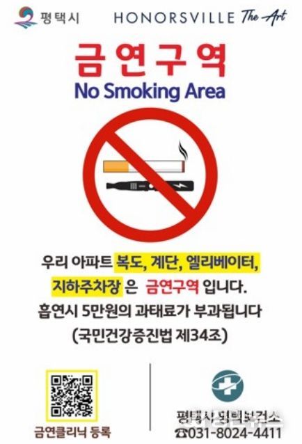 평택보건소 관계자는 “금연아파트는 주민들이 스스로 건강한 생활터전을 만들겠다는 약속의 결과물”이라며, “앞으로도 금연아파트 지정을 지속적으로 확대하여 간접흡연 걱정 없는 『금연도시 평택!』을 실현해 나가는 데 최선을 다하겠다”고 전했다.